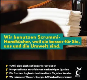 Wir arbeiten mit Scrummi Handtüchern aus Holzfasern.